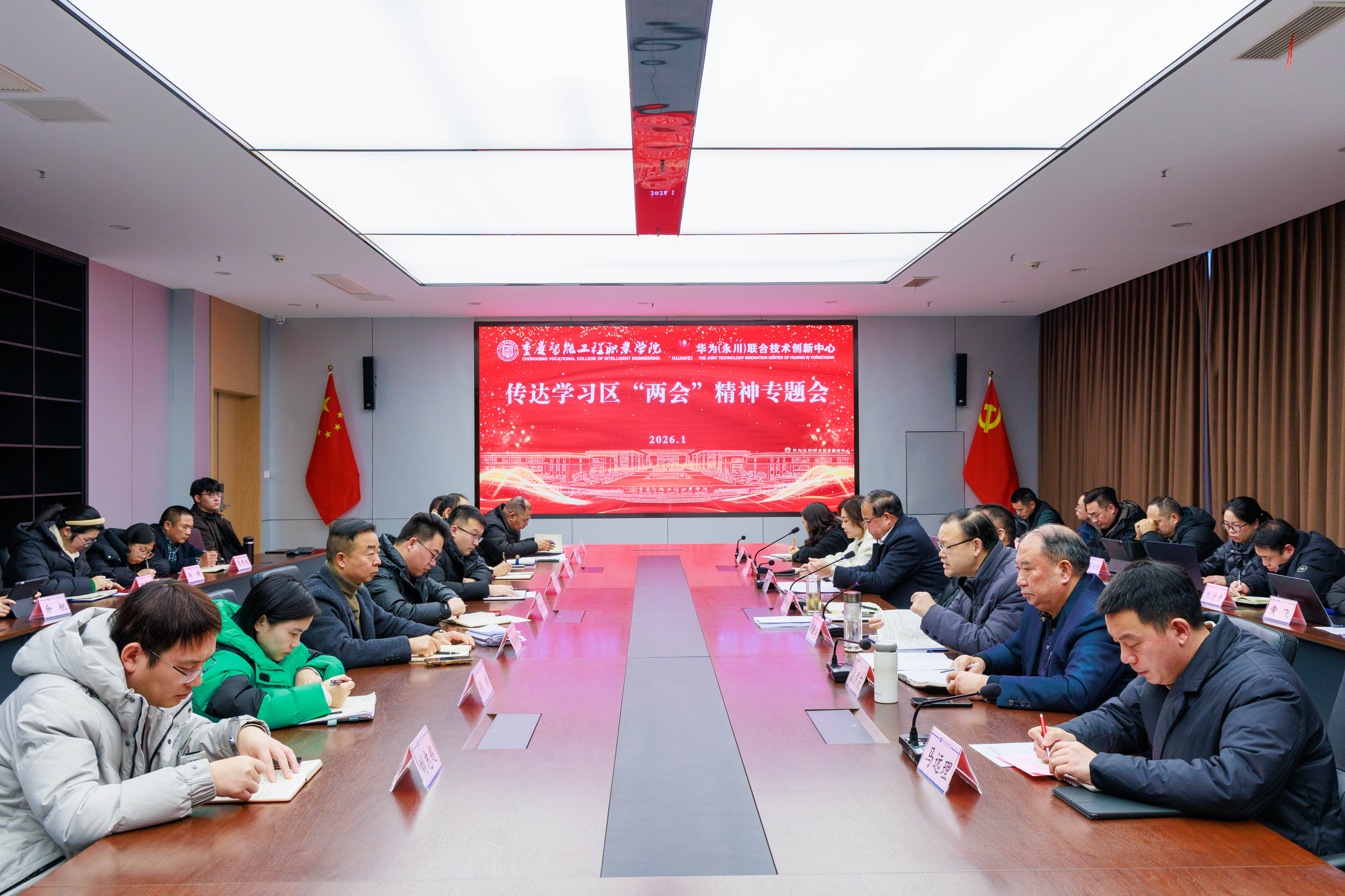 日前,我校召开全校干部专题会议,集中传达学习永川区十八届人大七次会议、区政协十六届六次会议精神,深入解读会议关于推动“人工智能+”行动、构建智能经济生态的部署要求,锚定学校发展定位,部署贯彻落实举措。永川区政协常委、校长程前,永川区人大代表、工会主席靳羚传达会议核心精神并提出工作要求。